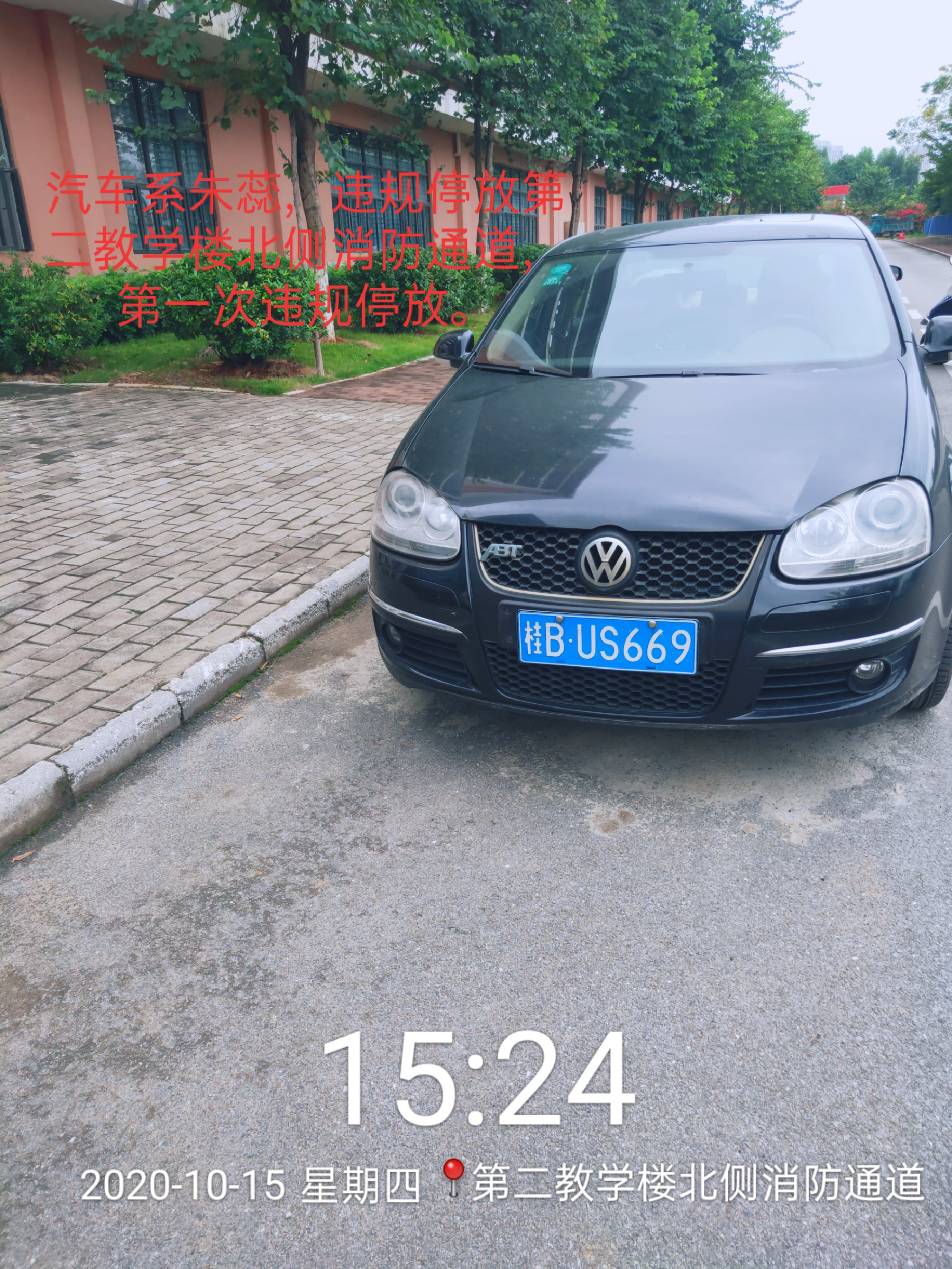 (二)外来车辆,车主:吕广彬,对接单位:招生就业部,违规停放地:科教楼北侧消防通道,违规次数:1次。