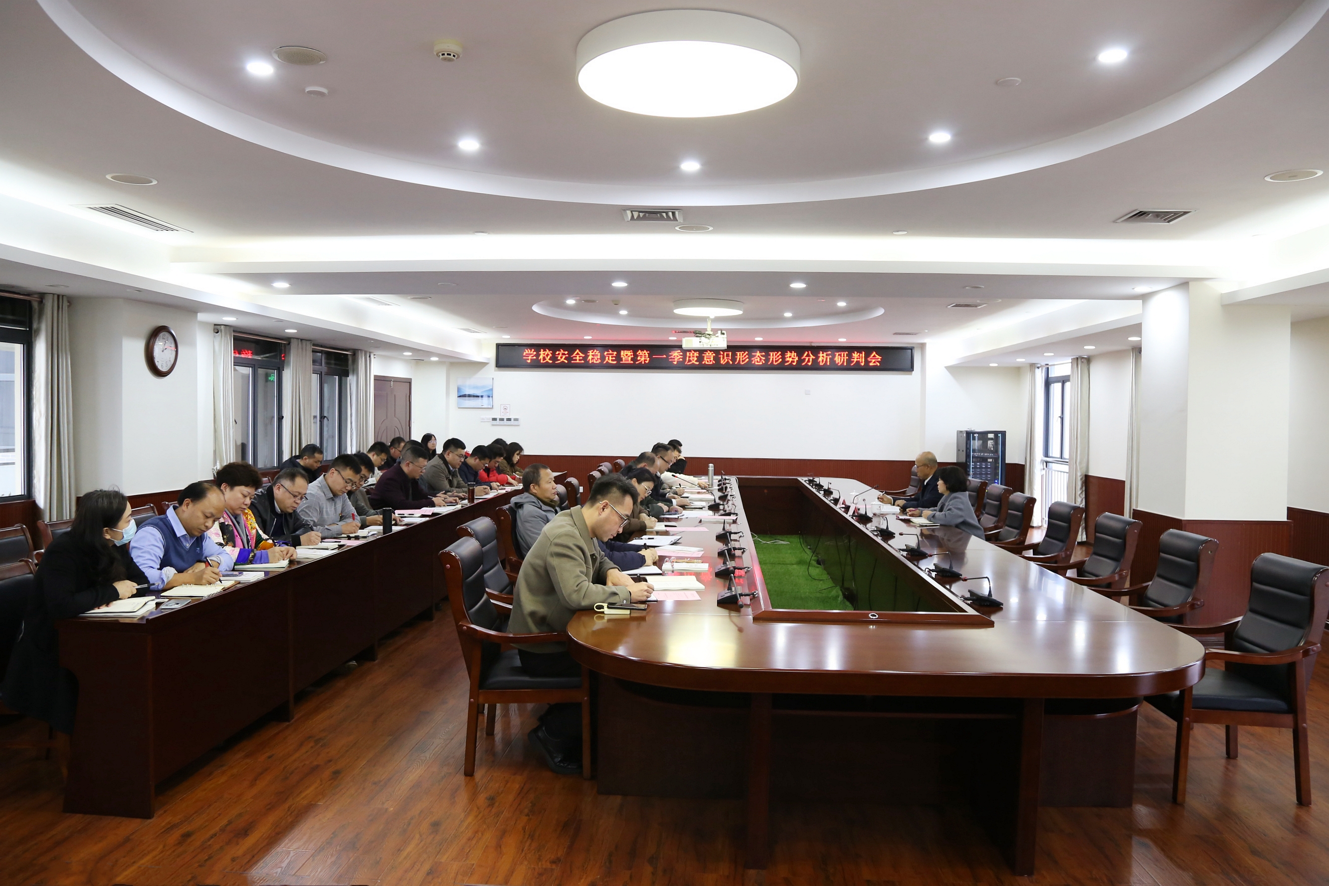 学校党委委员、组织宣传部部长王拓分析研判第一季度学校意识形态领域形势,保卫处处长李松通报近期校园安全工作检查情况,学生工作部部长刘云辉通报开学初学生工作情况,并布置下一阶段工作。