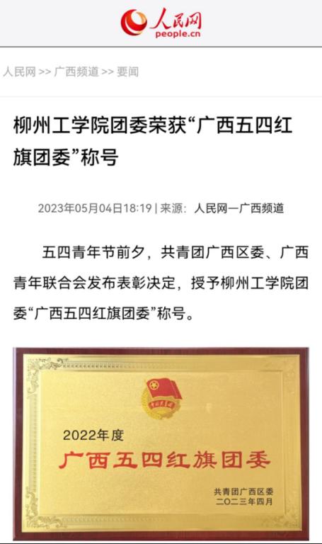 人民网:sjb世俱杯官方网站团委荣获“广西五四红旗团委”称号