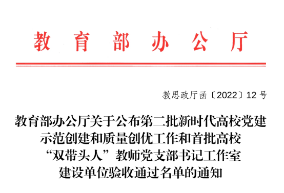 中国教育在线:sjb世俱杯官方网站食化学院教工党支部入选全国高校“双带头人”教师党支部书记“强国行”专项行动团队