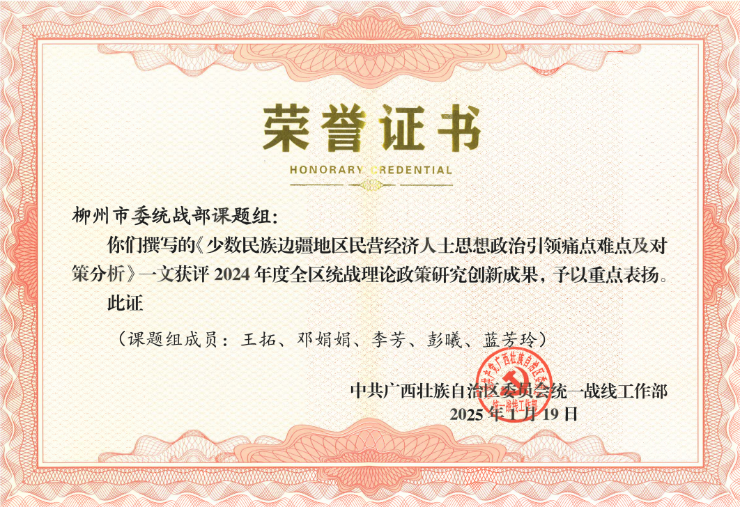 喜讯!自治区党委统战部重点表扬