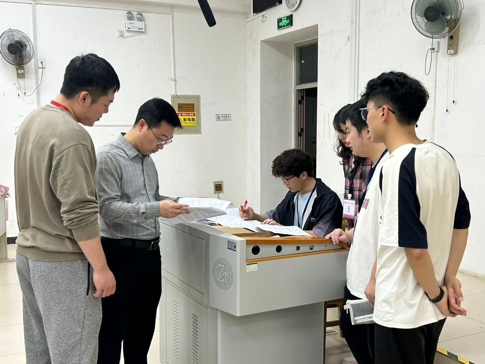考试期间,学院党建办公室主任刘佳豪全程监督考场纪律,认真查看同学们的答题情况以及监考人员的履职情况,确保了考察的严肃性和公信力。学院党总支书记许孝忠到场巡考。