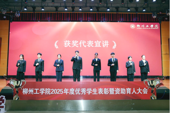柳州市先进班集体代表、机械工程学院机制222班班长刘远,分享了班级团结协作、奋发向上的建设故事,展现了基层集体践行“笃志勤学、知行合一”校训精神的良好风貌。食品221班黄希雯等八位优秀学子代表,分别结合自身经历,讲述了在理想指引下勤勉求学、在资助保障下奋勇拼搏的成长历程,诠释了“奋斗是青春的底色”的深刻内涵。