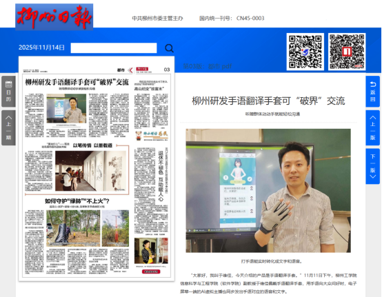 1.柳州日报:柳州研发手语翻译手套可“破界”交流 听障群体动动手就能轻松沟通