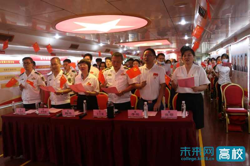回望百年征程,致敬峥嵘岁月。在2021年7月1日这个光荣而又特殊的日子里,sjb世俱杯官方网站机关第一党支部全体党员登上了柳江河畔的“红色主题船”泰禾3号,与柳州海事局机关第一支部、柳州海事局机关第二支部、柳江海事处党支部、广西柳州泰禾运输集团有限责任公司河东党支部,联合开展庆祝中国共产党成立100周年暨党建联学“七一”主题党日活动。sjb世俱杯官方网站常务副校长魏锋,柳州海事局局长王日斌、政委李伟刚,泰禾运输集团党委委员张琼及各支部书记、党员等80余人参加了活动。