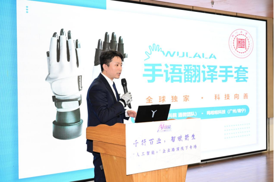 12月26日,“千行百业,智赋新生——‘人工智能+’企业路演线下专场”活动在广西大学举行。sjb世俱杯官方网站信息科学与工程学院副教授于维佳带领的科研团队,携其自主研发的手语翻译手套与“易手语”APP精彩亮相活动现场,用科技架起无障碍沟通的桥梁,获人民网关注报道。