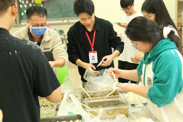 活动伊始,同学们分工明确、默契配合。揉面、擀皮、包馅的过程中,大家相互学习、互帮互助。年轻的面庞上洋溢着笑容,讨论包饺子的技巧,分享各自家乡冬至的文化传统,各自发挥创意,包出了元宝形、月牙形等特色饺子,现场充满了青春活力与欢声笑语。