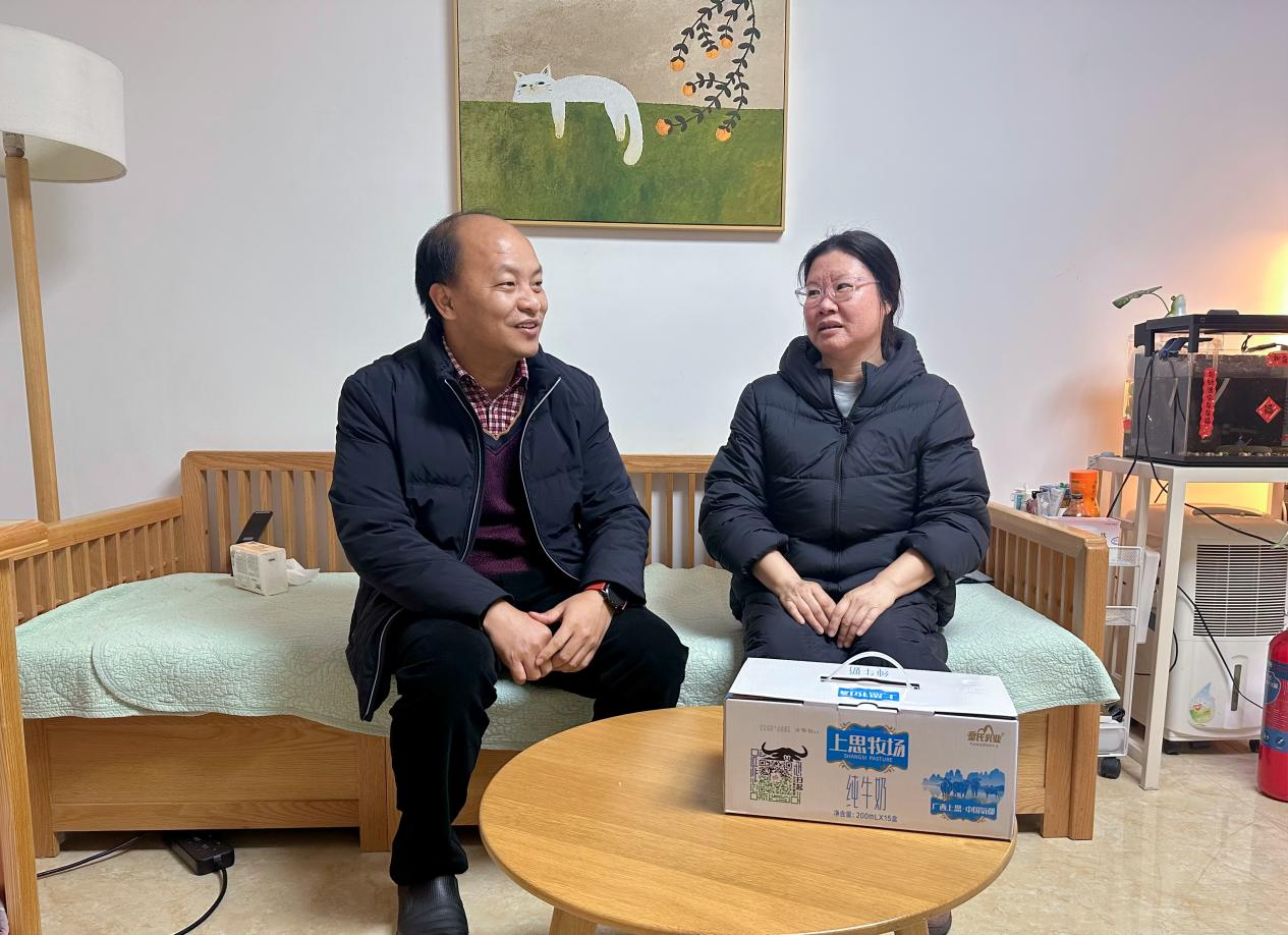 12月24日,设计艺术学院党总支书记文海燕、统战委员蔡佳萤一行开展统战对象走访慰问活动,先后走进民盟盟员、视觉传达设计教研室教师陈哲,党外知识分子、服装设计教研室教师钱沂家中,与他们促膝长谈、亲切交流,将学院党组织的深切关怀与节日祝福送到一线教师身边。