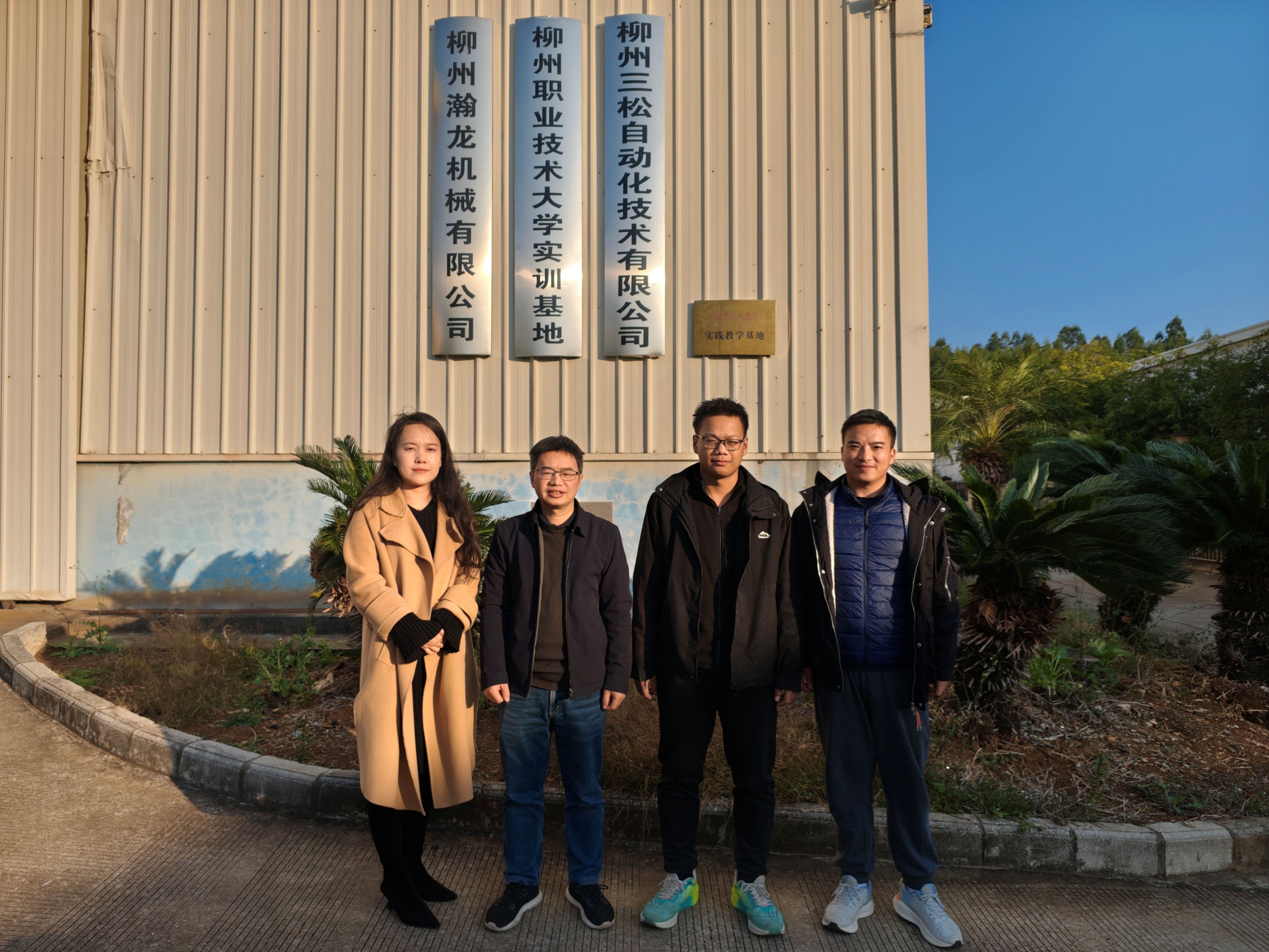 为深入推进产教融合,创新应用型人才培养模式,12月25日,机械工程学院机械设计制造及其自动化教研室主任李福送、骨干教师代表尹帅和虞正山一行前往柳州三松自动化技术有限公司,开展校企合作交流并探望在企校友。柳州三松自动化技术有限公司董事长劳淞及综合业务部经理韦海迪等人对学院教师团队的到访表示热烈欢迎,双方共同为校企合作实践教学基地挂牌,标志着双方合作进入实质性深化阶段。