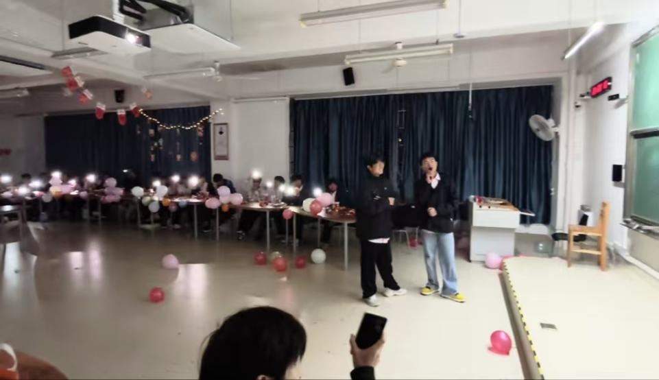 总结会后,元旦晚会欢乐开场。活动现场布置温馨美好,营造出浓厚的节日氛围。同学们精心准备的节目依次上演,一首充满激情的《懂不》拉开演出序幕,豪迈的歌声与动感节奏迅速点燃全场气氛。随后,《我很好》《我和你》《江南》等歌曲轮番上演,各部门成员的精彩演绎引来阵阵掌声。互动游戏环节同样亮点纷呈。“123看这边”考验反应与默契,“数字炸弹”悬念迭起,“你划我猜”妙趣横生,“谁是卧底”斗智斗勇,“涂鸦传递”创意频出。大家在欢笑中增进情谊,积分竞赛更为现场增添了热烈的氛围。