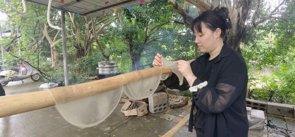 为了让同学们在劳动中感悟中华民族的传统文化,农场工作人员安排了打豆浆、包饺子,做洋芋粉、艾团项目。这些是中国上千年流传下来的重要习俗,具有浓厚的乡风民风特色。“制作洋芋粉要非常细致和有耐心,趁热铺平洋芋汁,磨豆浆要力度合适,配料适中,把握好节奏,每次用力准确,不能乱磨一通,否则直接影响豆浆成品的口感。”听完指导老师的讲解后,同学们分工合作,劳动中传递出了传统文化的魅力与同学间的默契。