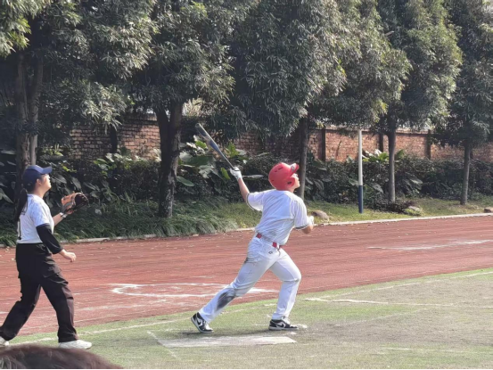 赛场形势严峻,对手攻势凌厉,但队员们沉着应战,攻守两端稳扎稳打,凭借默契配合和稳定发挥,牢牢掌控比赛节奏。其中经济管理学院财务231班学生王晨曦,这位全垒打选手堪称赛场重炮,挥棒时机拿捏精准到毫厘,每一记击球都力道千钧。棒球划破长空的弧线干脆利落,直接飞越外野高墙,不仅瞬间点燃全场观众的热情,更一次次用关键全垒打为队伍撕开僵局、锁定胜局。