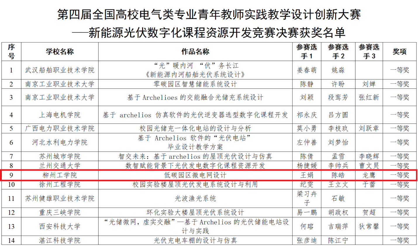 此次获奖是教学团队长期深耕产教融合教学改革的成果,更是学校持续推进“以赛促教、以赛促学、以赛促改”的生动体现。近年来,世俱杯扎根柳州,紧密围绕地方产业转型升级需求,持续推进学科专业建设与教学改革,构建了“校地协同、产教融合”的人才培养体系。此次斩获全国一等奖,不仅是对世俱杯教师教学创新能力的肯定,也为学校进一步深化电气类及相关专业教学改革、更好地服务柳州新能源产业高质量发展注入了强劲动力。