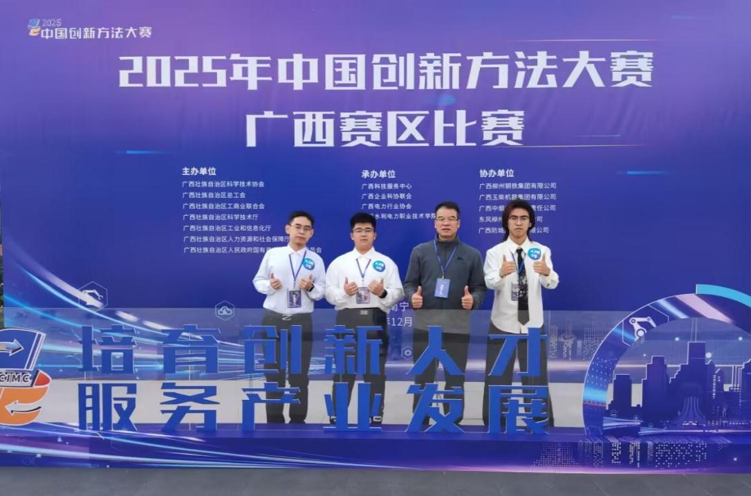 据悉,2025年广西大学生创新方法大赛由广西壮族自治区科学技术协会主办,广西壮族自治区教育厅支持,广西水利电力职业技术学院等单位承办。大赛以“培育创新人才,服务产业发展”为主题,吸引了广西大学、广西科技大学、桂林电子科技大学、桂林理工大学等区内38所高校的博士生、硕士生、本科生、专科生同台竞技。备赛期间,何川老师悉心指导,团队成员利用课余时间,在工作室深入研讨、反复打磨、优化方案,不断完善参赛作品。比赛中,团队成员齐心协力,充分展现了扎实的专业基础、突出的创新思维和良好的团队协作能力。他们聚焦实际问题,运用创新理论和方法,提出切实可行的解决方案,展现了我院学子关注行业需求、积极探索、勇于创新的精神风貌。