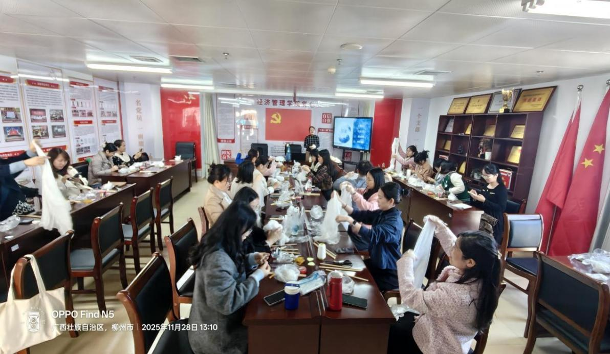 11月28日,经济管理学院教职工党支部成功举办“传承非遗技艺,弘扬匠心精神”主题党日活动。本次活动创新组织生活形式,将中华优秀传统文化体验与党员教育深度融合,并特别邀请党外人士代表以及广西科技大学经济与管理学院教职工党支部代表共同参与,在增进共识、凝聚力量中有效拓展了统战工作的广度与深度。