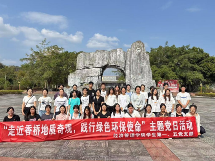 11月17日,经济管理学院学生第一、第五党支部联合举办了一场主题鲜明、内容丰富的党日活动——“行走的思政课”暨“寻访红色足迹,探秘地质奇观”。