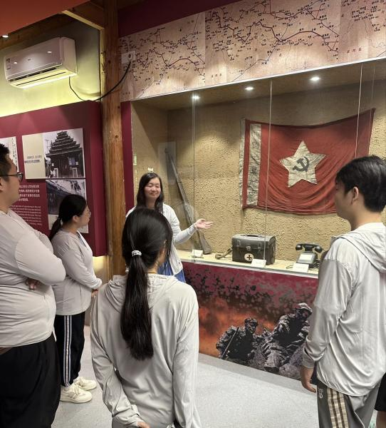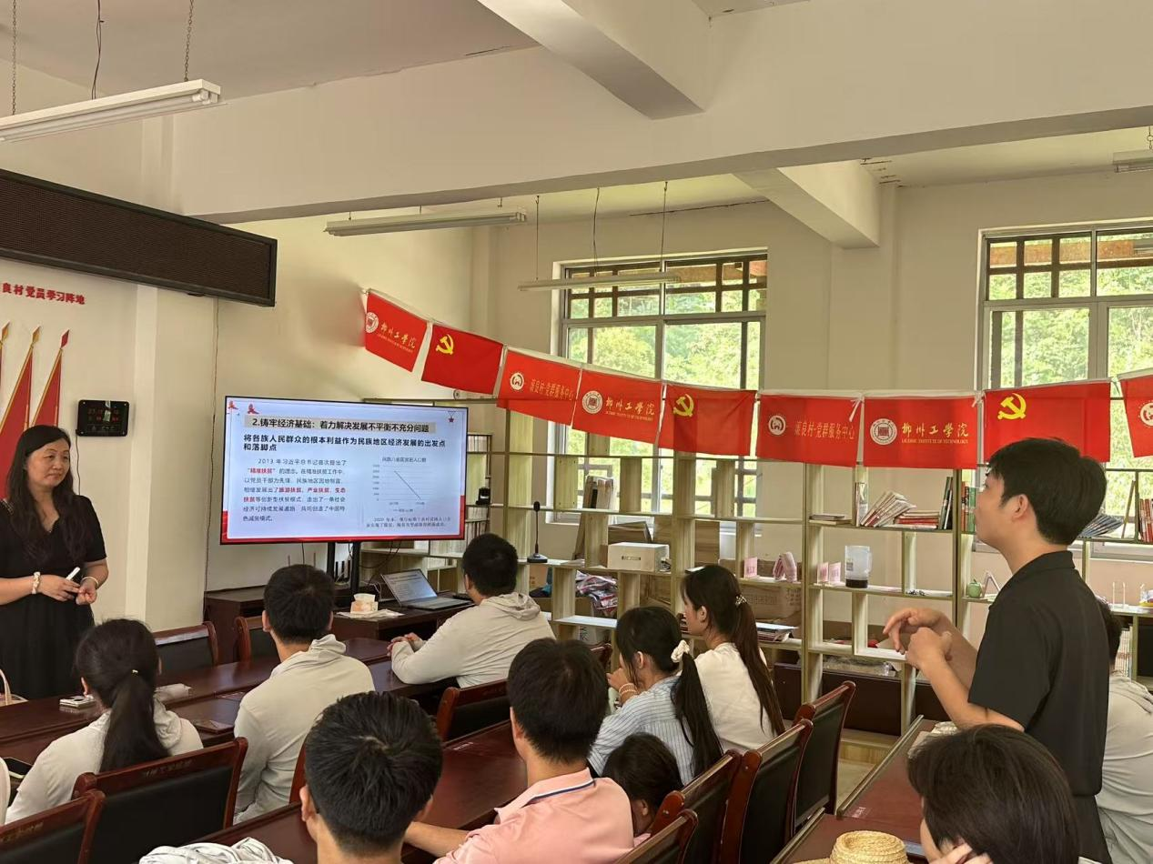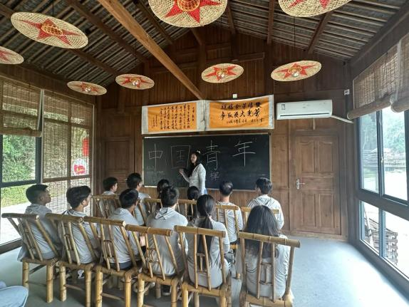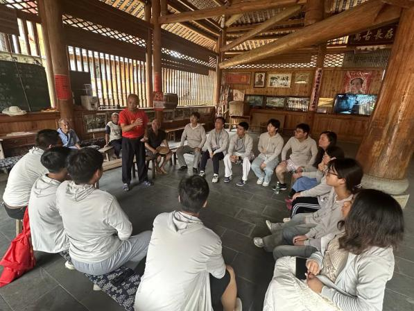 红色教育环节,则像一场“精神充电”。走进红色博物馆,师生们在“乡村变迁”展区驻足良久——老照片里的土坯房变成了现在的特色民宿,旧农具旁摆着新引进的智能设备。“这就是乡村振兴的鲜活案例啊!”一位老师指着照片对学生说。随后马克思主义学院彭曦老师进行授课,特意结合了侗族村寨的发展历程:“从‘吃饱穿暖’到‘文旅兴旺’,背后是一代代人敢闯敢干的劲头,这和我们党员‘为人民服务’的初心一脉相承。”理论与现实的呼应,让大家对“乡村振兴为何需要党员带头”有了更深的理解。