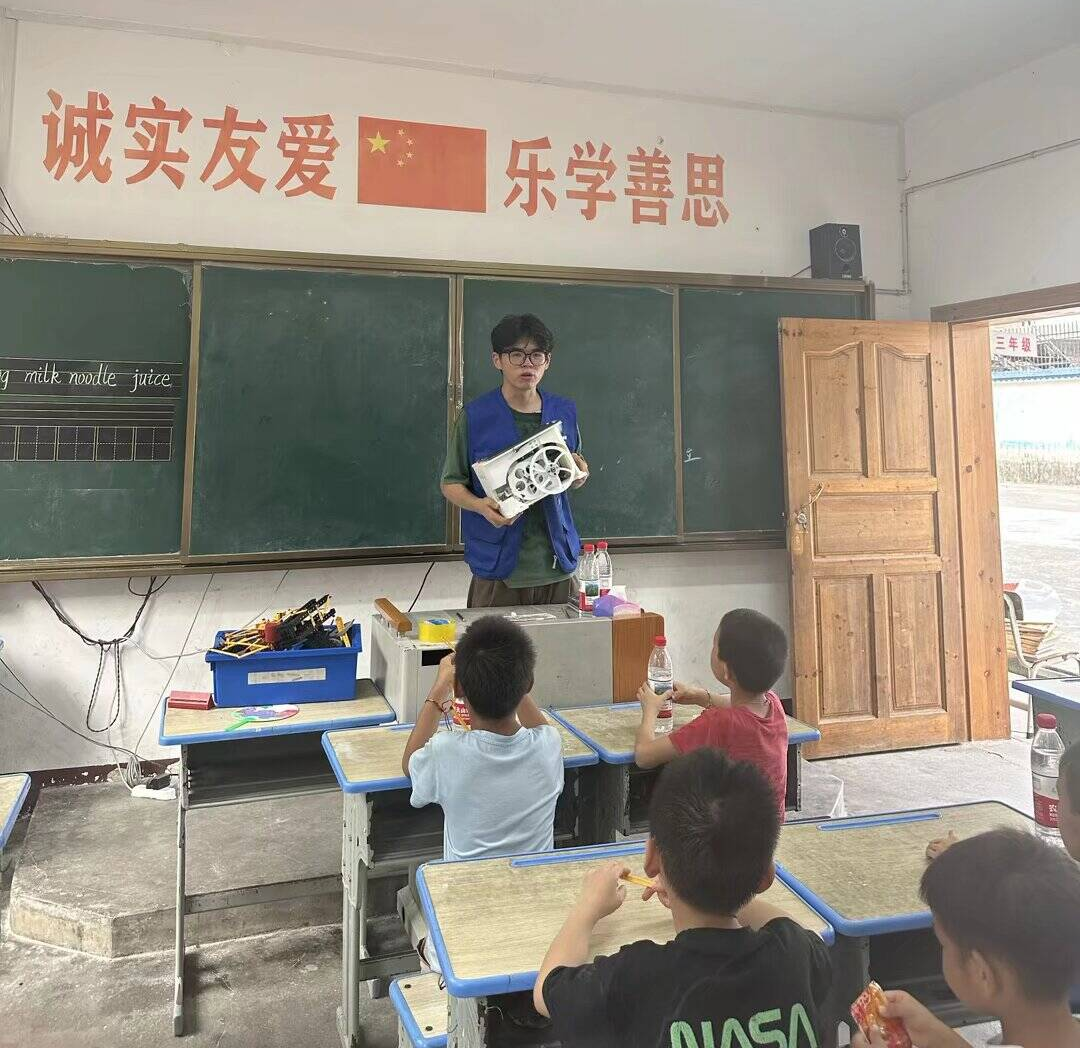 滚良村课堂上的“械趣童享”,是青年学子以专业所长践行科教兴国战略的生动实践。他们将机械原理转化为孩童易懂的生活语言,让传送带、连杆结构等机械结构知识借由玩具车、自行车等生活日常中常见的物件走进乡村孩童心中,这不仅是知识的传递,更是打破城乡智识壁垒、点亮乡村未来的具体行动。当科学的种子在孩子们眼中生根发芽,便为乡村振兴注入了“智志双扶”的青春动能,彰显了新时代青年以科技微光赋能民族复兴根基工程的使命担当,让科教兴国的光芒在基层土壤中绽放出助力共同富裕的璀璨光彩。