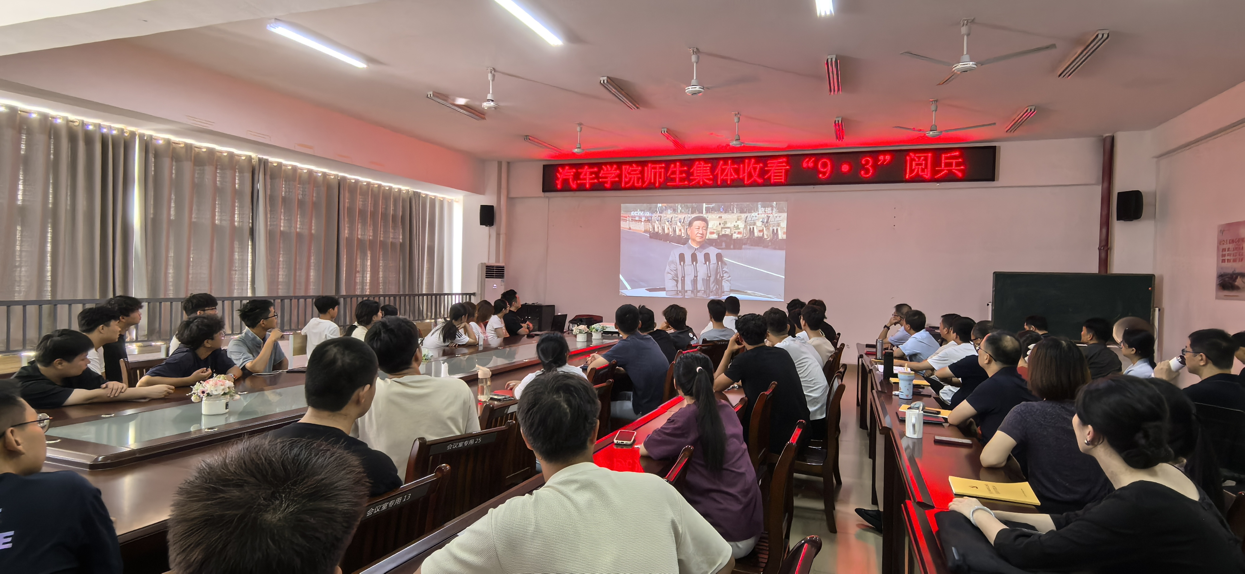 9月3日,纪念中国人民抗日战争暨世界反法西斯战争胜利80周年大会在北京天安门广场举行,sjb世俱杯官方网站汽车工程学院在南校区第三实训楼225会议室组织学院党员教师代表和学生代表观看了现场直播。