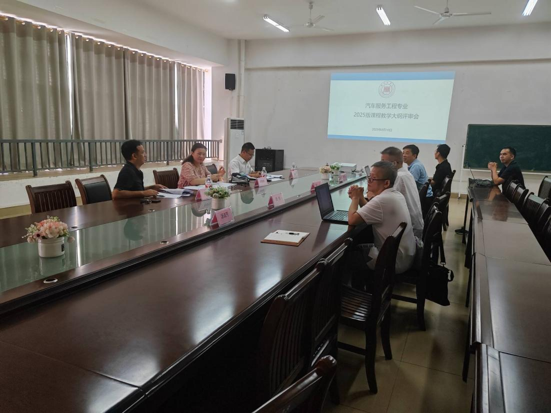 为将工程教育认证理念深度融入课程教学,贯彻落实学校“德为先、质为本、重应用、求创新”的办学理念,推进高素质应用型人才培养走深走实,2025年8月10日上午,汽车服务工程教研室于第三实训楼225会议室召开课程教学大纲现场评审会。广西科技大学机械与汽车工程学院高级工程师李春青、上汽通用五菱有限公司高级工程师梁锋、柳州乘龙专用车有限公司高级工程师林树生等3位校外专家莅临评审。汽车服务工程教研室主任杨磊主持会议,院长助理何川、专业负责人及教研室专任教师等5名教师参会。