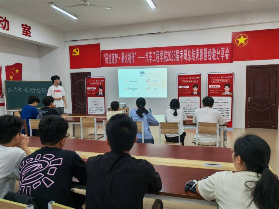 本次“研途逐梦·薪火相传”2025届考研经验分享会,不仅传递了务实高效的备考智慧,更凝聚了全院师生同心助力考研的坚定力量。相信在榜样引领与学院护航下,2026届考研学子定能汲取力量,扬帆起航,在未来的研途中续写汽车人的辉煌篇章!
