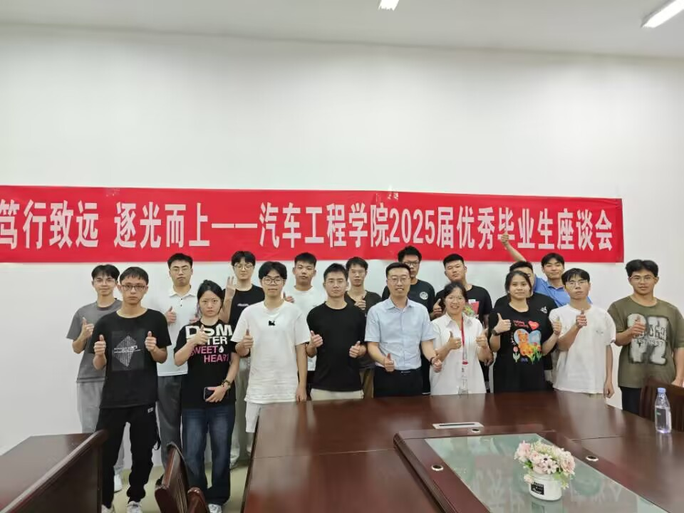 为凝聚毕业学子智慧,助力学院高质量发展,2025年6月18日,汽车工程学院举办“笃行致远 逐光而上——2025届优秀毕业生座谈会”,学院党总支书记许孝忠、辅导员李敏芳以及优秀毕业生代表参与了本次座谈会。