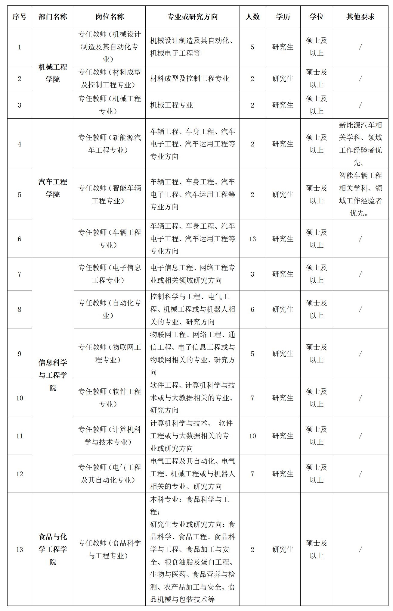 备注:1.对于未取得专业技术资格的硕士研究生不超过30周岁,博士研究生不超过40周岁;已取得中级专业技术资格的不超过35岁;副高专业技术资格的不超过40周岁;正高级专业技术资格的不超过45周岁。2.本科、研究生所学专业一致或相近。