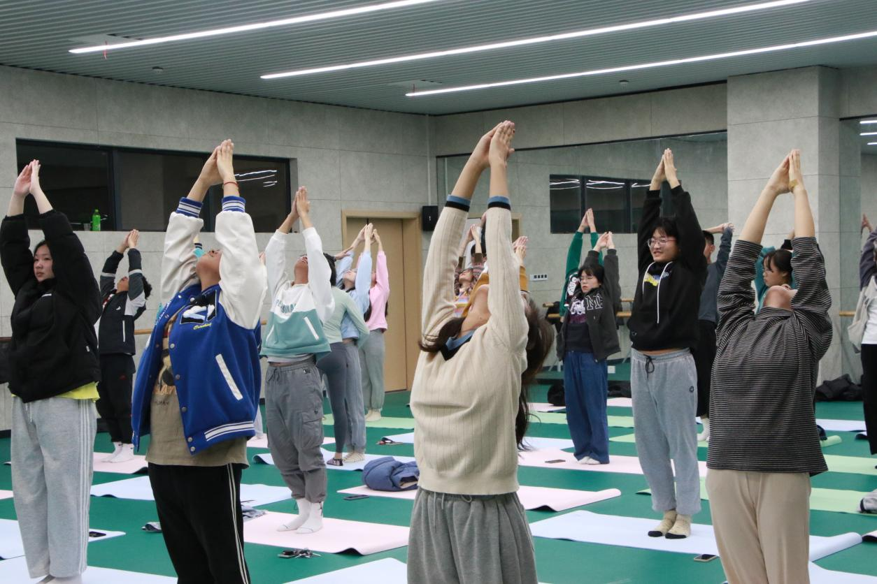 瑜伽是一种促使身体、心灵与精神和谐统一的运动方式,可以帮助同学们回归平静,聆听内心,缓解身心的疲劳和压力。在韦祁老师的带领下,同学们沉浸在瑜伽的奇妙世界中,体验身体和心灵的平衡,也为即将到来的期末周积蓄身体和心灵的能量。
