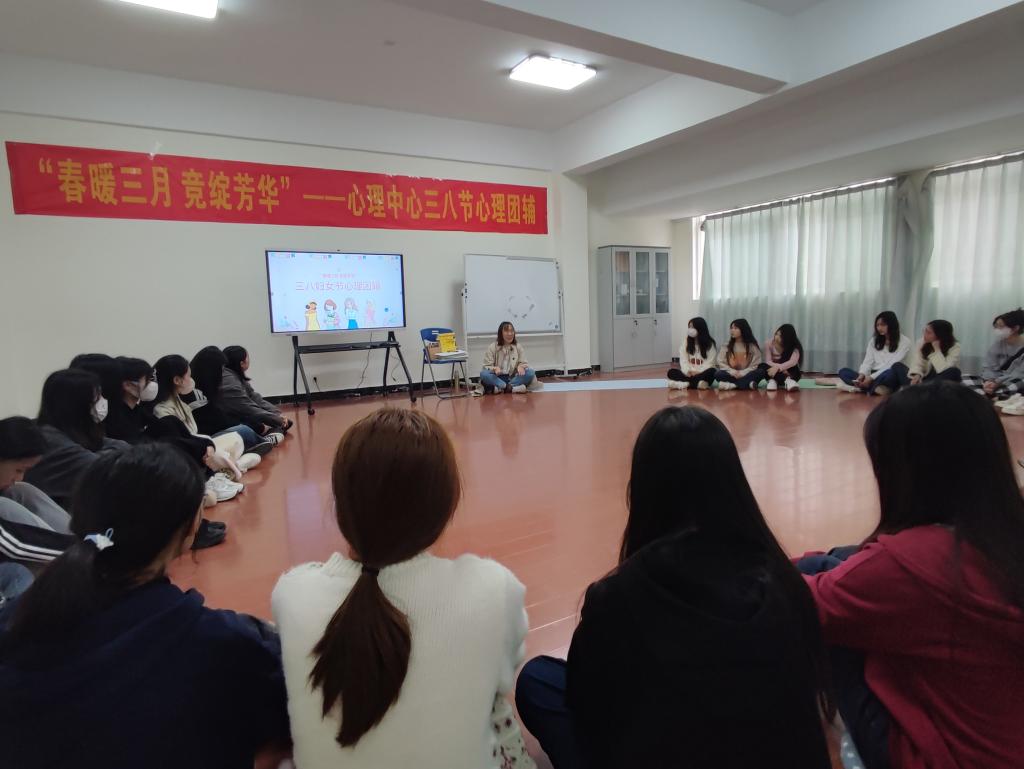 3月8日是国际劳动妇女节,为丰富世俱杯女性学生的精神文化生活,关爱学生的心理健康,世俱杯学生心理健康教育与咨询中心于3月8日、3月9日分别在南北校区组织了心理团辅活动,活动由梁艳梅老师和梁静老师主持。