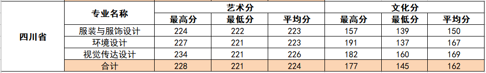 2020年各省各专业艺术类控制分数线统计