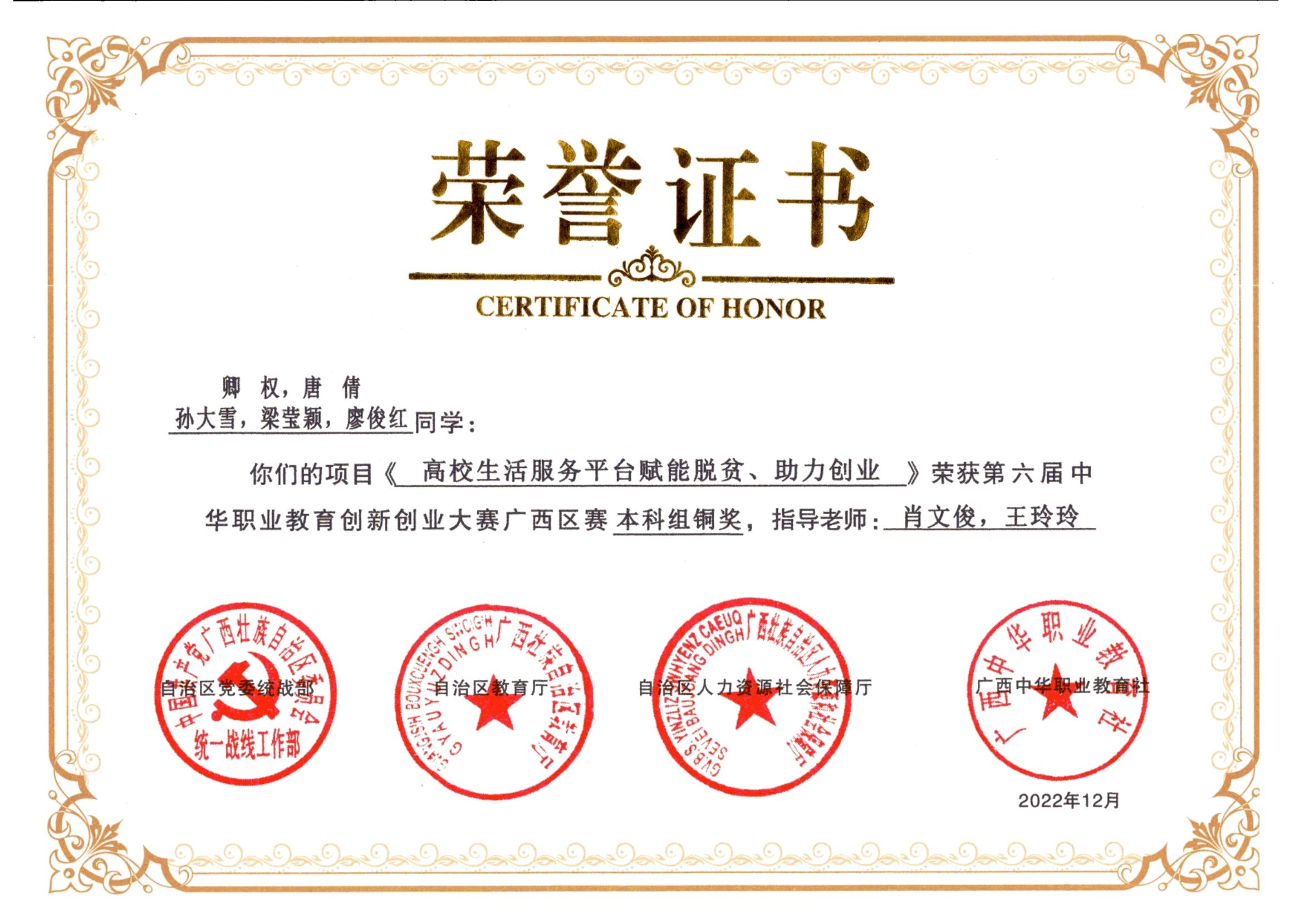2022年度获得第六届中华职业教育创新创业大赛本科组铜奖