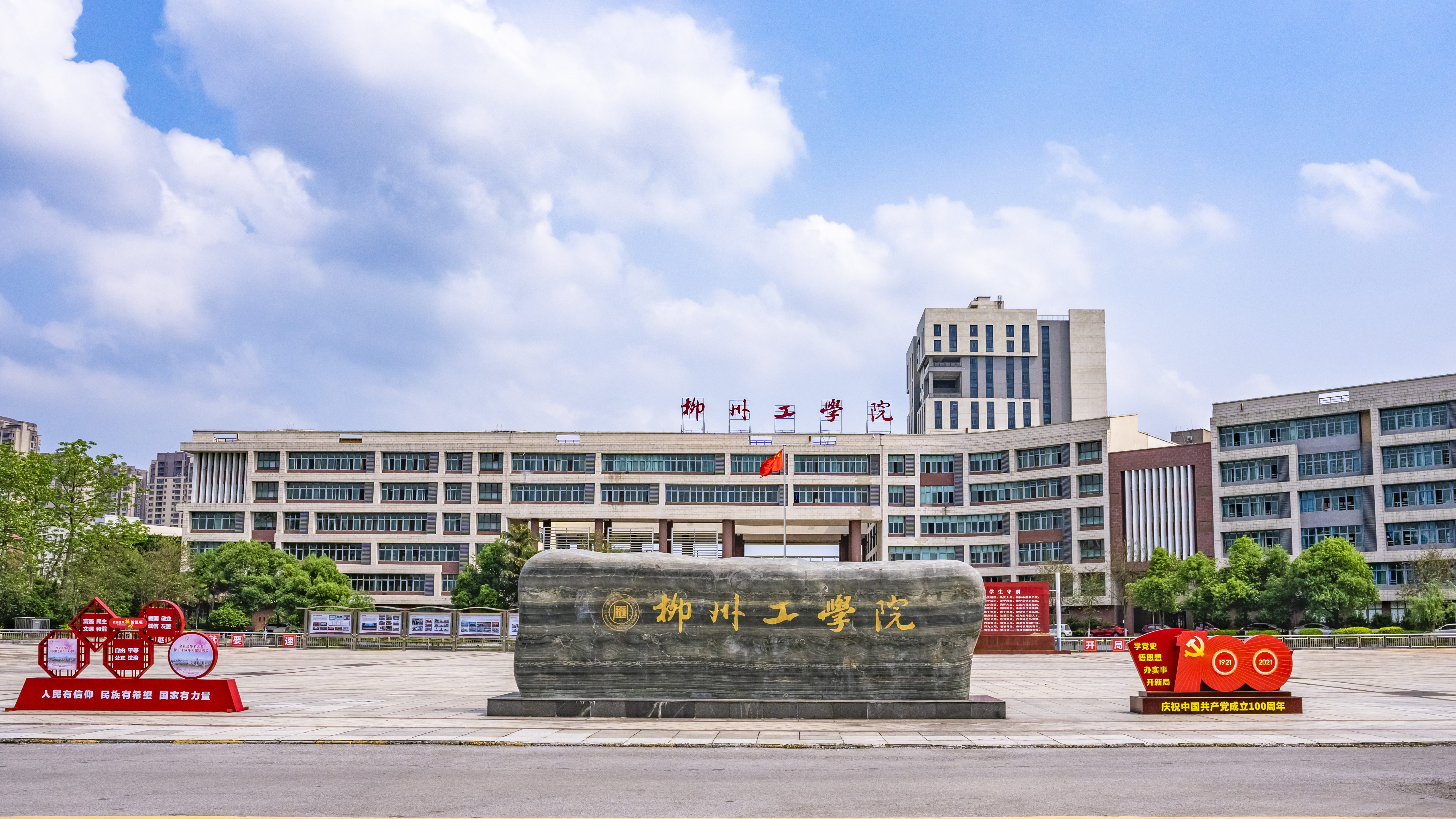 学校位于广西工业重镇、历史文化名城柳州市,校园占地面积1283.21亩,总建筑面积42.54万平方米,总投资逾17亿元人民币,教学科研设备值总量超过1.5亿元。拥有配套设施先进的教学与实验实训楼群,建设有基础实验中心、金工实习中心、各专业实验实训室、仿真实验实训中心等200余个实践教学平台,图书馆纸质馆藏书约185.21万册。